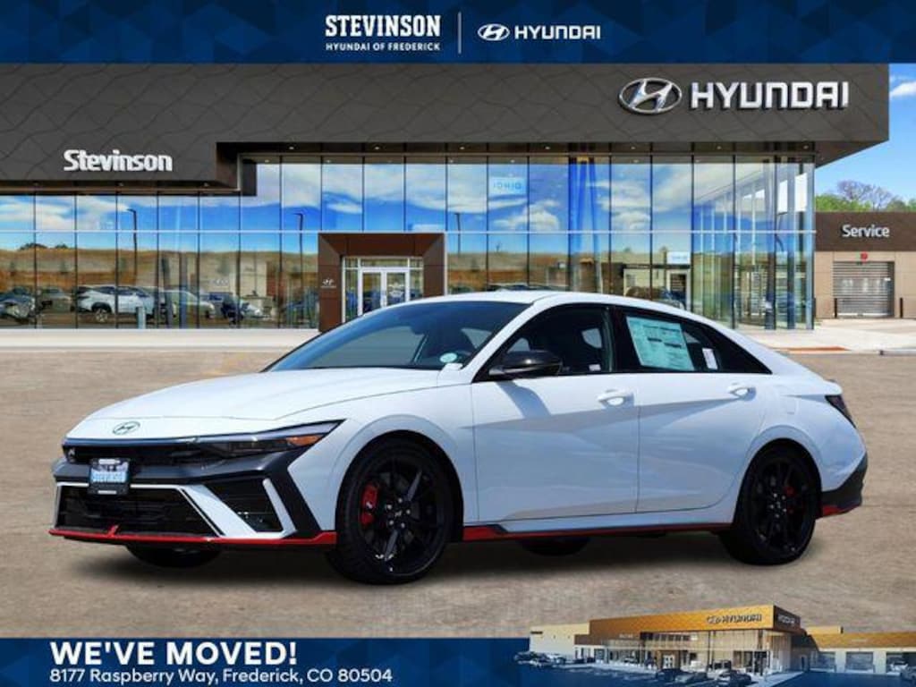 Atlas White 2025 Hyundai Elantra N N 8-Speed Wet Dual Clutch Priced below KBB Fair Purchase Price! Option Group 01, 4-Wheel Disc Brakes, 8 Speakers, ABS brakes, Air Conditioning, Alloy wheels, AM/FM radio: SiriusXM, Apple CarPlay & Android Auto, Auto High-beam Headlights, Automatic temperature control, Brake assist, Bumpers: body-color, Cargo Net, Compass, Delay-off headlights, Driver door bin, Driver vanity mirror, Dual front impact airbags, Dual front side impact airbags, Electronic Stability Control, Emergency communication system, Exterior Parking Camera Rear, First Aid Kit, Four wheel independent suspension, Front anti-roll bar, Front Bucket Seats, Front Center Armrest w/Storage, Front dual zone A/C, Front reading lights, Fully automatic headlights, Heated door mirrors, Heated front seats, Illuminated entry, Leather Shift Knob, Leather steering wheel, Leather-Trimmed with Microsuede Inserts Seat Trim, Low tire pressure warning, N Light Heated Sport Bucket Seats, Navigation System, Occupant sensing airbag, Outside temperature display, Overhead airbag, Overhead console, Panic alarm, Passenger door bin, Passenger vanity mirror, Power door mirrors, Power moonroof, Power steering, Power windows, Radio: Bose AM/FM/HD/SXM Audio System, Rear Bumper Applique, Rear side impact airbag, Rear window defroster, Remote keyless entry, Security system, Speed control, Speed-sensing steering, Spoiler, Steering wheel mounted audio controls, Tachometer, Telescoping steering wheel, Tilt steering wheel, Traction control, Trip computer, Turn signal indicator mirrors, Variably intermittent wipers, and Wheels: 19 x 8.0 Forged Alloy. 20/27 City/Highway MPG