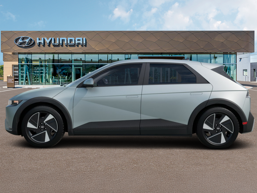 Sage Silver Matte 2026 Hyundai IONIQ 5 1-Speed Automatic SEL Option Group 01, 4-Wheel Disc Brakes, 6 Speakers, ABS brakes, Air Conditioning, Alloy wheels, AM/FM radio: SiriusXM, Apple CarPlay & Android Auto, Auto High-beam Headlights, Auto-dimming Rear-View mirror, Automatic temperature control, Bodyside moldings, Brake assist, Bumpers: body-color, Delay-off headlights, Driver door bin, Driver vanity mirror, Dual front impact airbags, Dual front side impact airbags, Electronic Stability Control, Emergency communication system: Bluelink+, Four wheel independent suspension, Front anti-roll bar, Front Bucket Seats, Front Center Armrest w/Storage, Front dual zone A/C, Front reading lights, Fully automatic headlights, Garage door transmitter: HomeLink, H-Tex Artifical Leather Seating Surfaces, harman/kardon® Speakers, Heated door mirrors, Heated Front Bucket Seats, Heated front seats, Illuminated entry, Low tire pressure warning, Navigation System, Occupant sensing airbag, Outside temperature display, Overhead airbag, Overhead console, Panic alarm, Passenger door bin, Passenger vanity mirror, Power door mirrors, Power driver seat, Power Liftgate, Power passenger seat, Power steering, Power windows, Radio: AM/FM/SiriusXM/HD Audio System, Rear anti-roll bar, Rear reading lights, Rear seat center armrest, Rear side impact airbag, Rear window defroster, Rear window wiper, Remote keyless entry, Security system, Speed control, Speed-sensing steering, Split folding rear seat, Spoiler, Steering wheel mounted audio controls, Telescoping steering wheel, Tilt steering wheel, Traction control, Trip computer, Turn signal indicator mirrors, Variably intermittent wipers, and Wheels: 19 x 7.5J Alloy. 110/87 City/Highway MPG