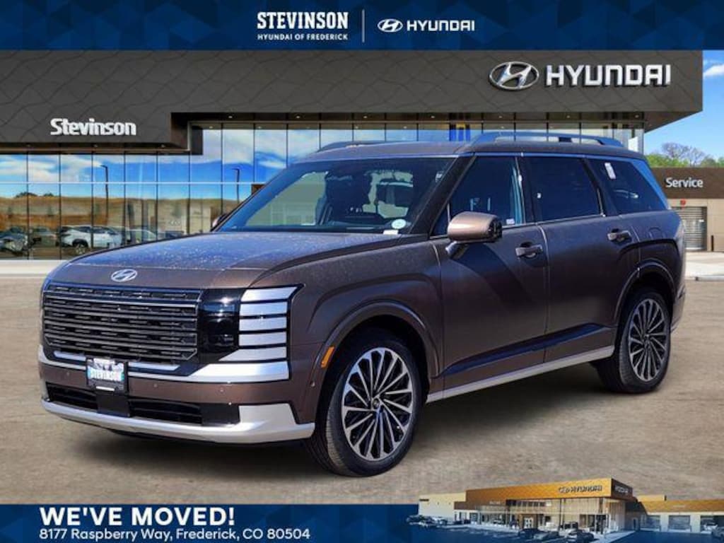 Earthy Brass Matte 2026 Hyundai Palisade 8-Speed Automatic Calligraphy Priced below KBB Fair Purchase Price! Option Group 01, 14 Speakers, 3rd row seats: split-bench, 4-Wheel Disc Brakes, ABS brakes, Air Conditioning, Alloy wheels, AM/FM radio: SiriusXM, Apple CarPlay & Android Auto, Audio memory, Auto High-beam Headlights, Auto-dimming door mirrors, Auto-dimming Rear-View mirror, Auto-leveling suspension, Automatic temperature control, Brake assist, Bumpers: body-color, Cargo Net, Cargo Organizer, Cargo Tray, Carpeted Floor Mats, Compass, Delay-off headlights, Driver door bin, Driver vanity mirror, Dual front impact airbags, Dual front side impact airbags, Electronic Stability Control, Emergency communication system: None, Exterior Parking Camera Rear, First Aid Kit, Four wheel independent suspension, Front anti-roll bar, Front Bucket Seats, Front Center Armrest, Front dual zone A/C, Front reading lights, Fully automatic headlights, Garage door transmitter: HomeLink, Genuine wood console insert, Genuine wood dashboard insert, Heads-Up Display, Heated and Ventilated Front Bucket Seats, Heated door mirrors, Heated front seats, Heated rear seats, Heated steering wheel, HVAC memory, Illuminated entry, Knee airbag, Leather steering wheel, Low tire pressure warning, Memory seat, Navigation System, Occupant sensing airbag, Outside temperature display, Overhead airbag, Overhead console, Panic alarm, Passenger door bin, Passenger vanity mirror, Power door mirrors, Power driver seat, Power Liftgate, Power moonroof, Power passenger seat, Power steering, Power windows, Premium Nappa Leather Seat Trim, Radio data system, Radio: Infotainment Navigation System, Rain sensing wipers, Rear air conditioning, Rear anti-roll bar, Rear audio controls, Rear reading lights, Rear side impact airbag, Rear window defroster, Rear window wiper, Reclining 3rd row seat, Remote keyless entry, Security system, Speed control, Split folding rear seat, Spoiler, Steering wheel mounted audio controls, Tachometer, Telescoping steering wheel, Tilt steering wheel, Traction control, Trip computer, Turn signal indicator mirrors, Variably intermittent wipers, Ventilated front seats, Ventilated rear seats, and Wheels: 21 x 8.5J Alloy.