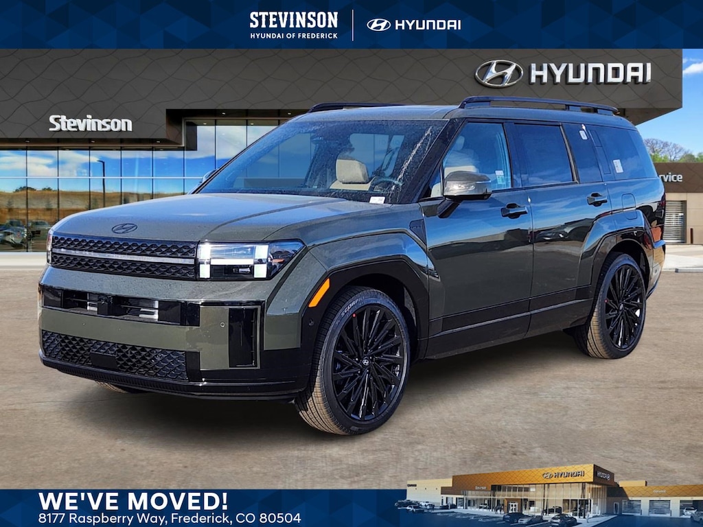 Rockwood Green 2026 Hyundai Santa Fe 8-Speed Automatic with SHIFTRONIC Calligraphy AWD, Pecan Brown Leather. Option Group 01, AWD, Pecan Brown Leather, 12 Speakers, 3rd row seats: bench, 4-Wheel Disc Brakes, ABS brakes, Air Conditioning, All Season Fitted Liners, Alloy wheels, AM/FM radio: SiriusXM, Apple CarPlay & Android Auto, Auto High-beam Headlights, Auto-dimming Rear-View mirror, Automatic temperature control, Brake assist, Bumpers: body-color, Cargo Cover/Screen, Cargo Net, Carpeted Floor Mats, Delay-off headlights, Driver door bin, Driver vanity mirror, Dual front impact airbags, Dual front side impact airbags, Electronic Stability Control, Emergency communication system, Exterior Parking Camera Rear, First Aid Kit, Four wheel independent suspension, Front anti-roll bar, Front Bucket Seats, Front Center Armrest, Front dual zone A/C, Front reading lights, Fully automatic headlights, Garage door transmitter: HomeLink, Heads-Up Display, Heated and Ventilated Front Bucket Seats, Heated door mirrors, Heated front seats, Heated rear seats, Heated steering wheel, Illuminated entry, Knee airbag, Leather steering wheel, Low tire pressure warning, Memory seat, Navigation System, Occupant sensing airbag, Outside temperature display, Overhead airbag, Overhead console, Panic alarm, Passenger door bin, Passenger vanity mirror, Power door mirrors, Power driver seat, Power Liftgate, Power moonroof, Power passenger seat, Power steering, Power windows, Quilted Premium Nappa Leather Seat Trim, Radio: AM/FM/HD Bose Premium Audio System, Rain sensing wipers, Rear anti-roll bar, Rear side impact airbag, Rear window defroster, Rear window wiper, Remote keyless entry, Security system, Speed control, Speed-sensing steering, Split folding rear seat, Spoiler, Steering wheel mounted audio controls, Tachometer, Telescoping steering wheel, Tilt steering wheel, Traction control, Trip computer, Turn signal indicator mirrors, Variably intermittent wipers, Ventilated front seats, and Wheels: 21 x 8.5J Unique Dark Finish Alloy. 20/28 City/Highway MPG