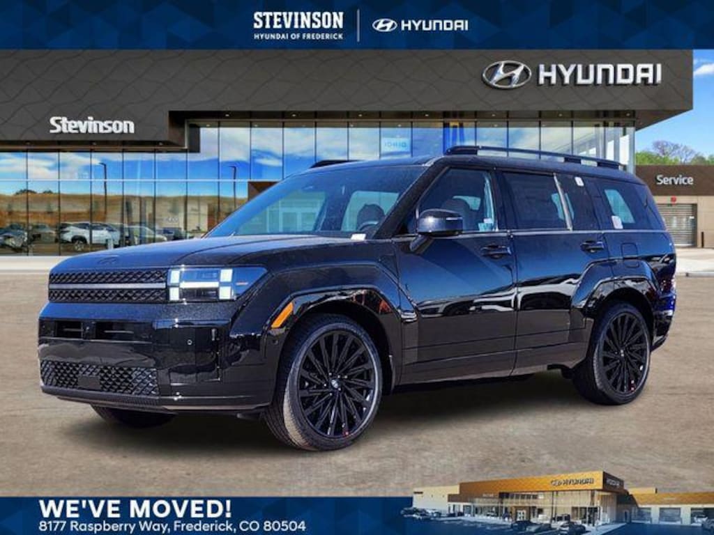 Phantom Black 2026 Hyundai Santa Fe 8-Speed Automatic with SHIFTRONIC Calligraphy AWD, Pecan Brown Leather. Option Group 01, AWD, Pecan Brown Leather, 12 Speakers, 3rd row seats: bench, 4-Wheel Disc Brakes, ABS brakes, Air Conditioning, All Season Fitted Liners, Alloy wheels, AM/FM radio: SiriusXM, Apple CarPlay & Android Auto, Auto High-beam Headlights, Auto-dimming Rear-View mirror, Automatic temperature control, Brake assist, Bumpers: body-color, Cargo Cover/Screen, Cargo Net, Cargo Tray, Carpeted Floor Mats, Delay-off headlights, Driver door bin, Driver vanity mirror, Dual front impact airbags, Dual front side impact airbags, Electronic Stability Control, Emergency communication system, Exterior Parking Camera Rear, First Aid Kit, Four wheel independent suspension, Front anti-roll bar, Front Bucket Seats, Front Center Armrest, Front dual zone A/C, Front reading lights, Fully automatic headlights, Garage door transmitter: HomeLink, Heads-Up Display, Heated and Ventilated Front Bucket Seats, Heated door mirrors, Heated front seats, Heated rear seats, Heated steering wheel, Illuminated entry, Knee airbag, Leather steering wheel, Low tire pressure warning, Memory seat, Mudguards, Navigation System, Occupant sensing airbag, Outside temperature display, Overhead airbag, Overhead console, Panic alarm, Passenger door bin, Passenger vanity mirror, Power door mirrors, Power driver seat, Power Liftgate, Power moonroof, Power passenger seat, Power steering, Power windows, Quilted Premium Nappa Leather Seat Trim, Radio: AM/FM/HD Bose Premium Audio System, Rain sensing wipers, Rear anti-roll bar, Rear side impact airbag, Rear window defroster, Rear window wiper, Remote keyless entry, Security system, Speed control, Speed-sensing steering, Split folding rear seat, Spoiler, Steering wheel mounted audio controls, Tachometer, Telescoping steering wheel, Tilt steering wheel, Traction control, Trip computer, Turn signal indicator mirrors, Variably intermittent wipers, Ventilated front seats, and Wheels: 21 x 8.5J Unique Dark Finish Alloy. 20/28 City/Highway MPG