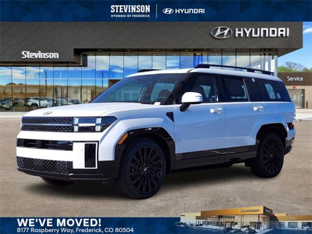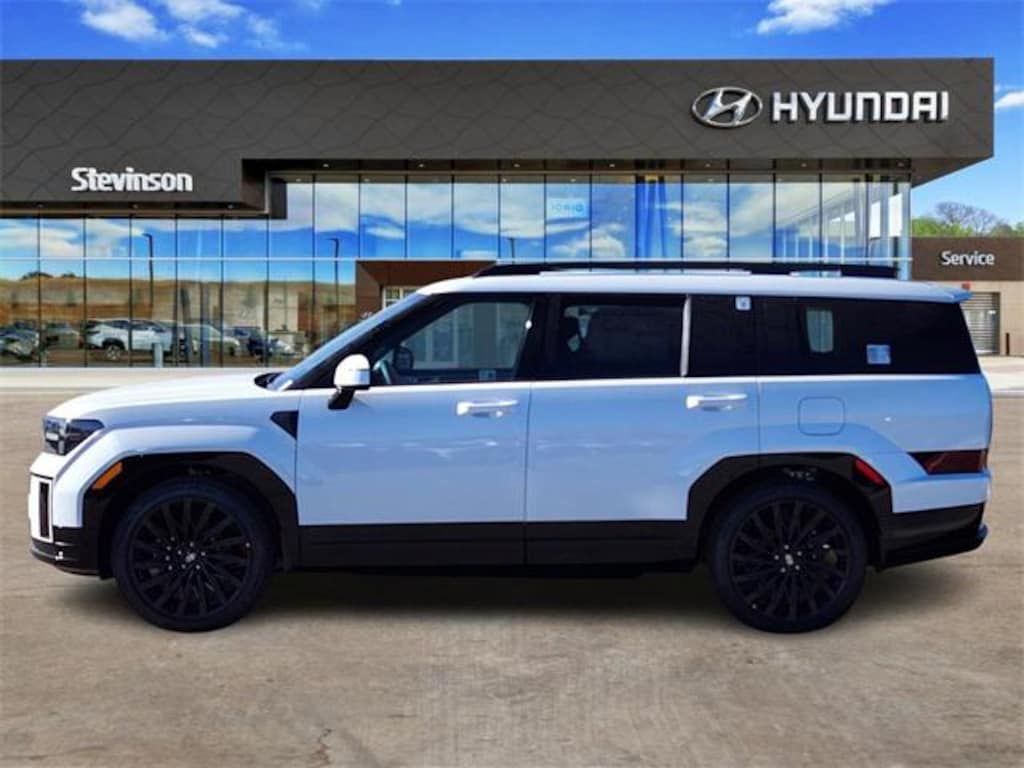 Serenity White 2026 Hyundai Santa Fe 8-Speed Automatic with SHIFTRONIC Calligraphy AWD, Pecan Brown Leather. Option Group 01, AWD, Pecan Brown Leather, 12 Speakers, 3rd row seats: bench, 4-Wheel Disc Brakes, ABS brakes, Air Conditioning, Alloy wheels, AM/FM radio: SiriusXM, Apple CarPlay & Android Auto, Auto High-beam Headlights, Auto-dimming Rear-View mirror, Automatic temperature control, Brake assist, Bumpers: body-color, Cargo Blocks, Cargo Net, Cargo Tray, Carpeted Floor Mats, Delay-off headlights, Driver door bin, Driver vanity mirror, Dual front impact airbags, Dual front side impact airbags, Electronic Stability Control, Emergency communication system, Exterior Parking Camera Rear, First Aid Kit, Four wheel independent suspension, Front anti-roll bar, Front Bucket Seats, Front Center Armrest, Front dual zone A/C, Front reading lights, Fully automatic headlights, Garage door transmitter: HomeLink, Heads-Up Display, Heated & Ventilated Front Bucket Seats, Heated door mirrors, Heated front seats, Heated rear seats, Heated steering wheel, Illuminated entry, Knee airbag, Leather steering wheel, Low tire pressure warning, Memory seat, Mudguards, Navigation System, Occupant sensing airbag, Outside temperature display, Overhead airbag, Overhead console, Panic alarm, Passenger door bin, Passenger vanity mirror, Power door mirrors, Power driver seat, Power Liftgate, Power moonroof, Power passenger seat, Power steering, Power windows, Quilted Premium Nappa Leather Seat Trim, Radio: AM/FM/HD Bose Premium Audio System, Rain sensing wipers, Rear anti-roll bar, Rear side impact airbag, Rear window defroster, Rear window wiper, Remote keyless entry, Roadside Assistance Kit, Roof Rack Crossbars, Security system, Speed control, Speed-sensing steering, Split folding rear seat, Spoiler, Steering wheel mounted audio controls, Tachometer, Telescoping steering wheel, Tilt steering wheel, Traction control, Trip computer, Turn signal indicator mirrors, Variably intermittent wipers, Ventilated front seats, and Wheels: 21 x 8.5J Unique Dark Finish Alloy.