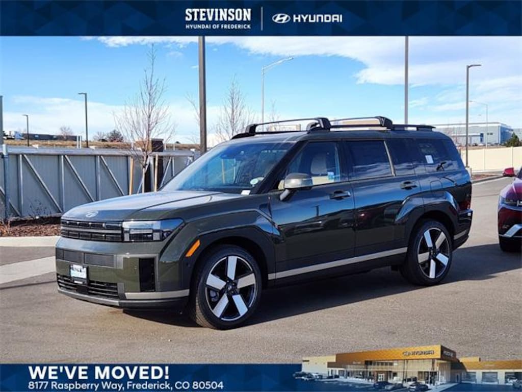 Rockwood Green 2026 Hyundai Santa Fe 8-Speed Automatic with SHIFTRONIC Limited AWD, Pecan Brown Leather. AWD, Pecan Brown Leather, 12 Speakers, 3rd row seats: bench, 4-Wheel Disc Brakes, ABS brakes, Air Conditioning, Alloy wheels, AM/FM radio: SiriusXM, Apple CarPlay & Android Auto, Auto High-beam Headlights, Auto-dimming Rear-View mirror, Automatic temperature control, Brake assist, Bumpers: body-color, Cargo Blocks, Cargo Cover/Screen, Cargo Net, Cargo Tray, Carpeted Floor Mats, Delay-off headlights, Driver door bin, Driver vanity mirror, Dual front impact airbags, Dual front side impact airbags, Electronic Stability Control, Emergency communication system, Exterior Parking Camera Rear, First Aid Kit, Four wheel independent suspension, Front anti-roll bar, Front Bucket Seats, Front Center Armrest, Front dual zone A/C, Front reading lights, Fully automatic headlights, Garage door transmitter: HomeLink, Heated and Ventilated Front Bucket Seats, Heated door mirrors, Heated front seats, Heated rear seats, Heated steering wheel, Illuminated entry, Knee airbag, Leather Seat Trim, Leather steering wheel, Low tire pressure warning, Memory seat, Navigation System, Occupant sensing airbag, Outside temperature display, Overhead airbag, Overhead console, Panic alarm, Passenger door bin, Passenger vanity mirror, Power door mirrors, Power driver seat, Power Liftgate, Power moonroof, Power passenger seat, Power steering, Power windows, Radio: AM/FM/HD Bose Premium Audio System, Rain sensing wipers, Rear anti-roll bar, Rear side impact airbag, Rear window defroster, Rear window wiper, Remote keyless entry, Roadside Assistance Kit, Roof Rack Crossbars, Security system, Speed control, Speed-sensing steering, Split folding rear seat, Spoiler, Steering wheel mounted audio controls, Tachometer, Telescoping steering wheel, Tilt steering wheel, Traction control, Trip computer, Turn signal indicator mirrors, Variably intermittent wipers, Ventilated front seats, and Wheels: 20 x 8.5J Alloy.