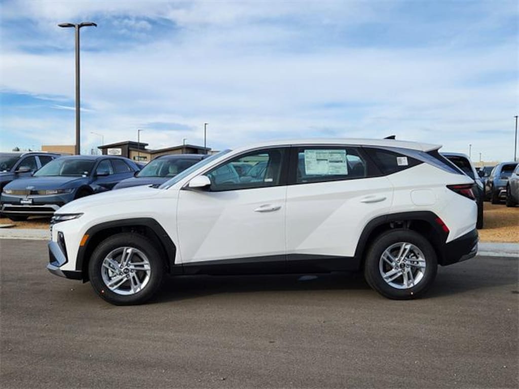 White Pearl 2026 Hyundai Tucson 8-Speed Automatic with SHIFTRONIC SE AWD. Option Group 01, AWD, 17 x 7.0J Alloy Wheels, 4-Wheel Disc Brakes, 6 Speakers, ABS brakes, Air Conditioning, Alloy wheels, AM/FM radio: SiriusXM, Apple CarPlay & Android Auto, Auto High-beam Headlights, Brake assist, Bumpers: body-color, Cargo Blocks, Cargo Cover, Cargo Net, Cargo Organizer, Cargo Tray, Carpeted Floor Mats, Delay-off headlights, Driver door bin, Driver vanity mirror, Dual front impact airbags, Dual front side impact airbags, Electronic Stability Control, Emergency communication system: Bluelink+, First Aid Kit, Four wheel independent suspension, Front anti-roll bar, Front Bucket Seats, Front Center Armrest, Front reading lights, Fully automatic headlights, Illuminated entry, Low tire pressure warning, Occupant sensing airbag, Outside temperature display, Overhead airbag, Overhead console, Panic alarm, Passenger door bin, Passenger vanity mirror, Power door mirrors, Power steering, Power windows, Radio data system, Radio: AM/FM/HD Audio System, Rear anti-roll bar, Rear reading lights, Rear seat center armrest, Rear side impact airbag, Rear window defroster, Rear window wiper, Remote keyless entry, Security system, Severe Weather Kit, Speed control, Split folding rear seat, Spoiler, Stain & Odor Resistant Cloth Seat Trim, Steering wheel mounted audio controls, Tachometer, Telescoping steering wheel, Tilt steering wheel, Traction control, Trip computer, and Variably intermittent wipers. 24/30 City/Highway MPG